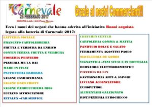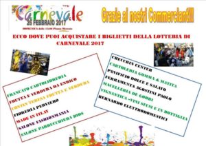 Eccovi qua !!! Ormai manca poco al Carnevale affrettatevi ad acquistare i biglietti… I premi quest’anno saranno dei buoni acquisto da spendere nei negozi di Villanova… Grazie a tutti i commercianti che hanno aderito!