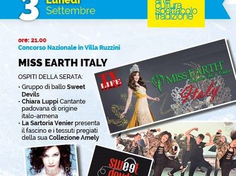 Durante la serata di Lunedì 3 Settembre presso Villa Ruzzini Piazza Mariutto ci sarà Concorso Nazionale Miss Earth Italy. Una serata che riserverà tante sorprese tra cui un’ospite d’eccellenza direttamente da Milano, make up artist hair stylist Gianni Graziano. Ci saranno anche due ospiti eccezionali: un gruppo di ballo che vede […]