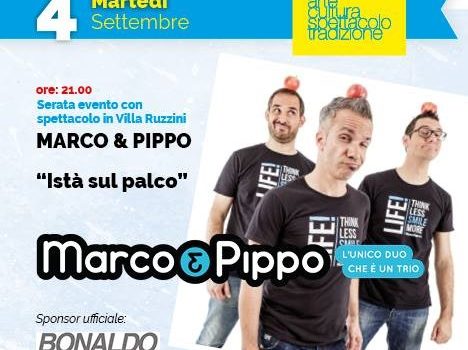 Durante la serata di Martedì 4 Settembre presso Villa Ruzzini Piazza Mariutto ci sarà Serata evento con spettacolo “Istà sul palco” di Marco & Pippo.