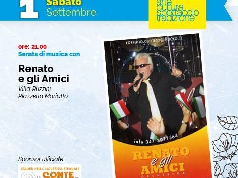 Durante la serata di Sabato 1 Settembre presso Villa Ruzzini Piazza Mariutto ci sarà Serata di musica con Renato e gli Amici.