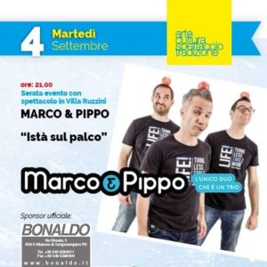 Durante la serata di Martedì 4 Settembre presso Villa Ruzzini Piazza Mariutto ci sarà Serata evento con spettacolo “Istà sul palco” di Marco & Pippo.