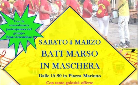 Tutto pronto per un Batimarso scaccia inverno Riviviamo il Capodanno Veneto facendo “baccano” per le vie di Villanova . E con le maschere ci divertiremo ancora di più . Con la presenza delle scuole dell’infanzia sarà un serpentone coloratissimo. In testa al gruppo Bloko Intestinhao ne sentiremo delle belle Al […]