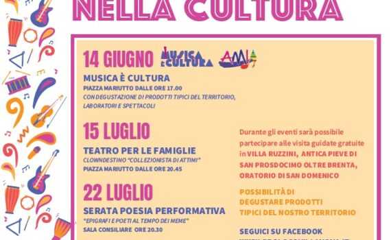 14 giugno Musica è cultura Piazza Mariutto dalle ore 17:00 con degustazione di prodotti tipici del territorio, laboratori e spettacoli 15 luglio Teatro per le famiglie Clowndestino “collezionista di attimi” Piazza Mariutto dalle ore 20:45 22 luglio Serata poesia performativa “epigrafi e poeti al tempo dei meme” Sala consiliare ore […]