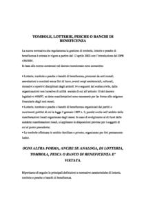 Normativa in tema di tombole, lotterie, pesche o banchi di beneficienza di Amministrazione Sito Pro Loco|Pubblicato 01/02/2017