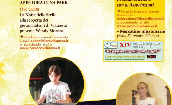 Durante la serata di domenica 6 Settembre ci sarà La Notte delle Stelle alla scoperta dei giovani dei talenti di Villanova in cui presenterà Wendy Muraro.