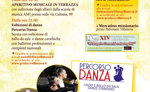 Durante la serata di lunedì 7 Settembre con Percorso Danza ci saranno esibizioni di ballo da sala e danze caraibiche con ballerini professionisti e campioni nazionali.