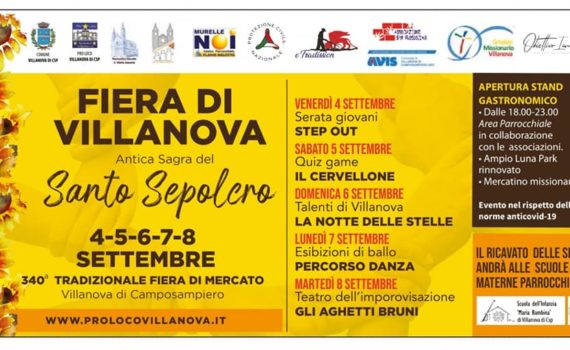 Tradizionale Fiera Mercato 2021 di Villanova di Camposampiero, 341° Antica Sagra del Santo Sepolcro che si terrà dal 3 al 7 Settembre. Ecco il link per visualizzare/scaricare il libretto: https://drive.google.com/file/d/1SQDbcrfrsK0wy3adXbk7JY0Rrcl66kcm/view Per prenotare il posto al gazebo panini e patatine 🍟 e/o per gli eventi della fiera vai a queste pagine: […]
