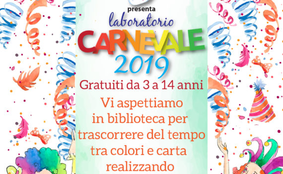 In collaborazione con Creativity Lab e con il patrocinio del Comune di Villanova di Camposampiero, mercoledì 13 Marzo 2019 presso Biblioteca in Piazza Mariutto dalle ore 16 alle ore 17:30 ci sarà il laboratorio di CARNEVALE 2019. Gratuito da 3 a 14 anni. Vi aspettiamo in biblioteca per trascorre del […]